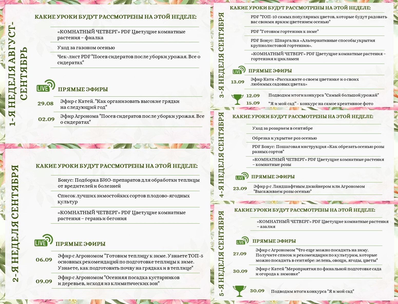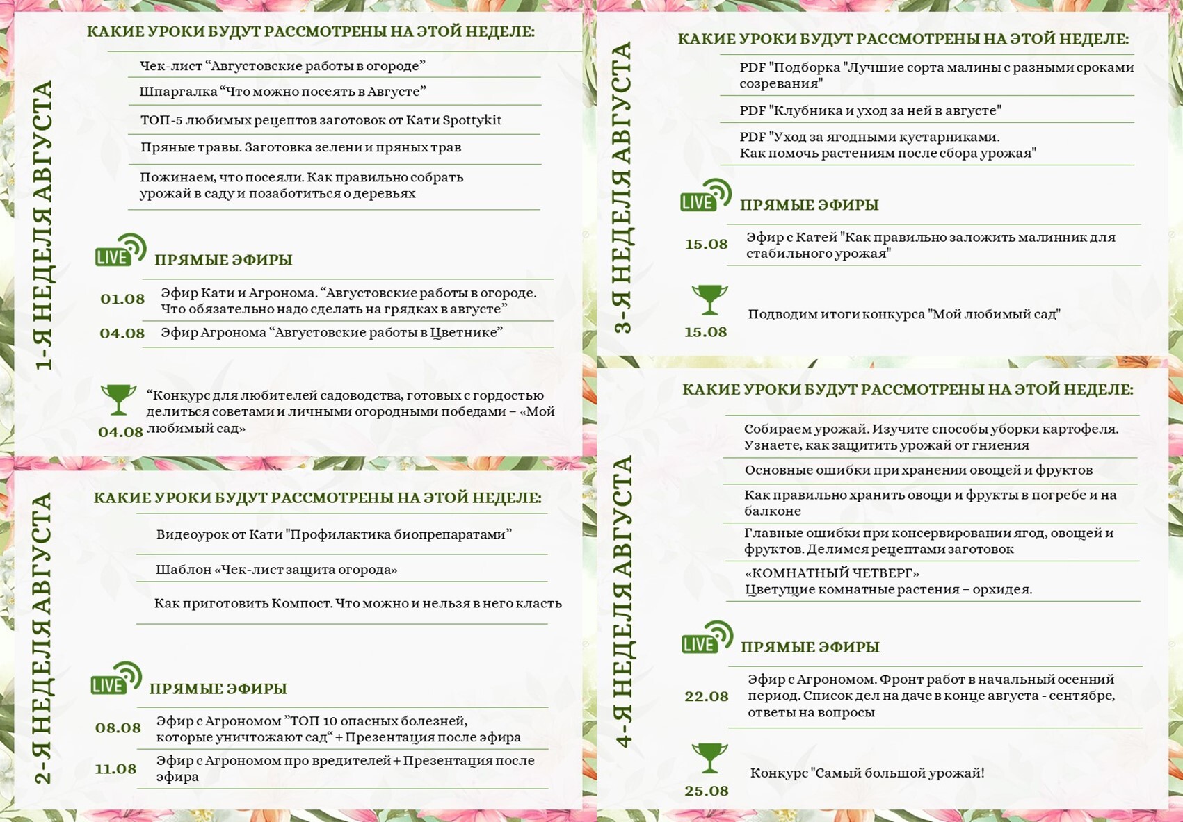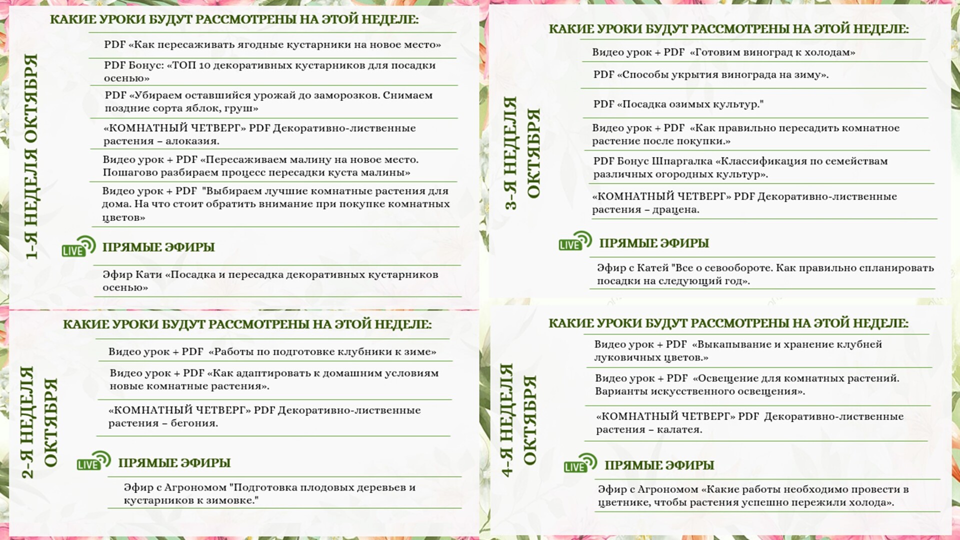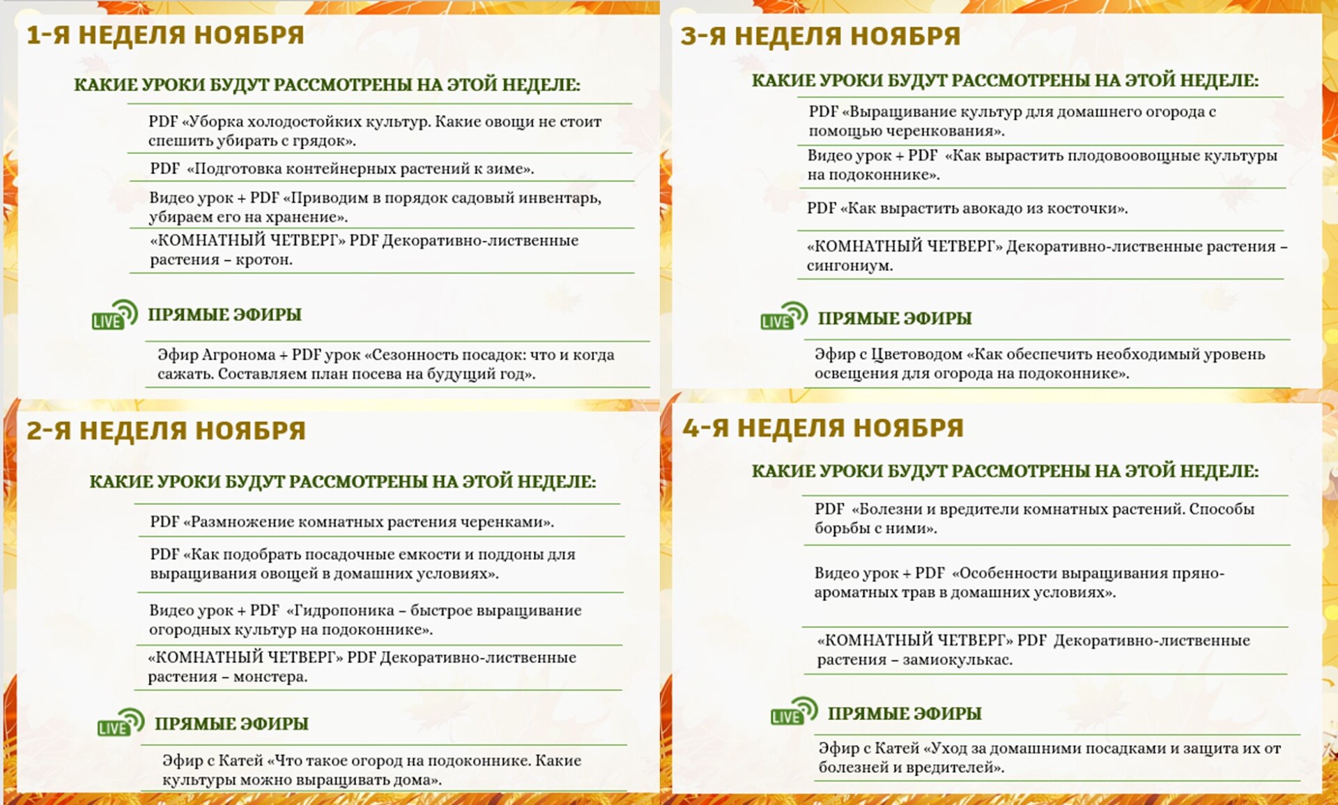 Уроки, вебинары, эфиры с Катей и профессиональными экспертами-агрономами